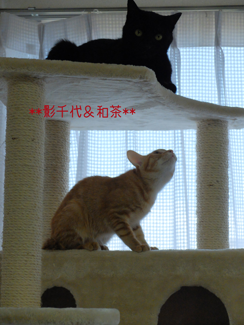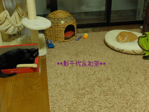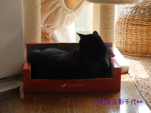 和茶ちゃんの落ち着いた様子が影君に心地よいみたいですね