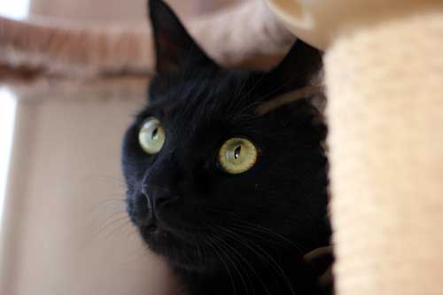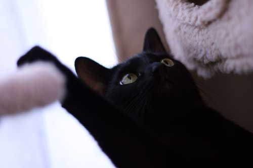 黒ネコさん大抵、見上げてたり横目でちらっと見てたりしてるから