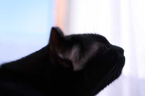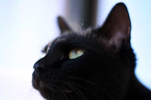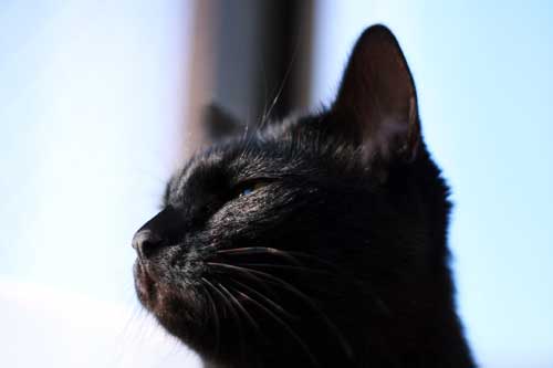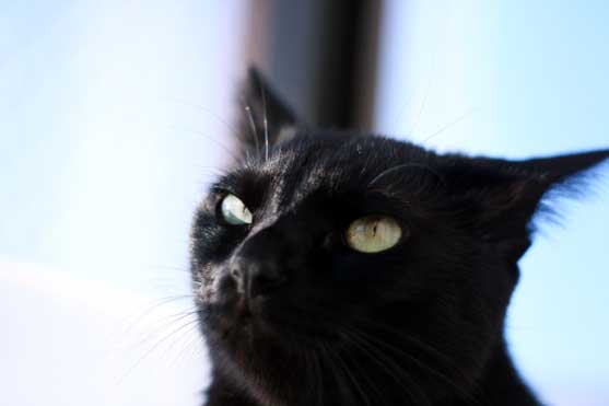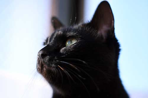 鼻筋の1本白毛(幸せの毛)も際立つ、ビロードの黒。