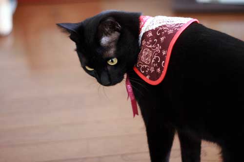これ、イオリちゃんとモカちゃんが付けてたのとちょっと似てます♪柄の入り方がそんな感じで、こ~ゆ~気の効いた柄ってのはもう誰かが手作りするしか手に入らないんだなぁ…と、