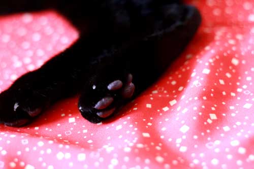 何かに使いたくも、どうにも派手っちゅうか、妖艶な色の布(爆
