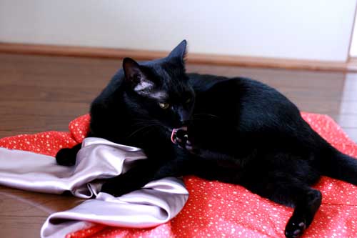 絹大好きな影千代君はごきげんでスリスリごろごろですね^^