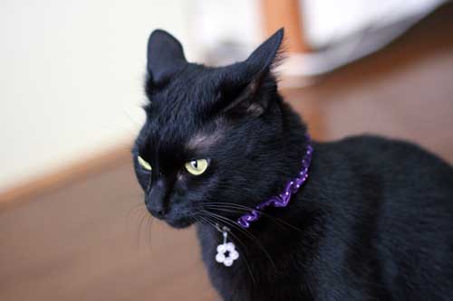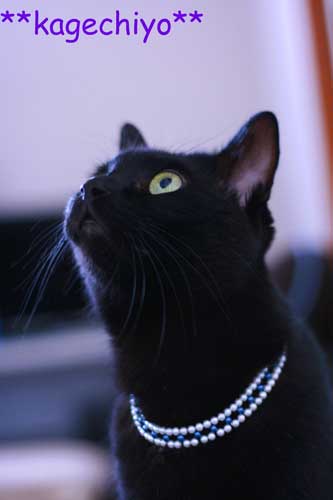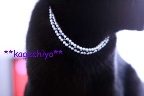 ビロードのような黒猫の毛並みに緩やかに添うパールビーズ