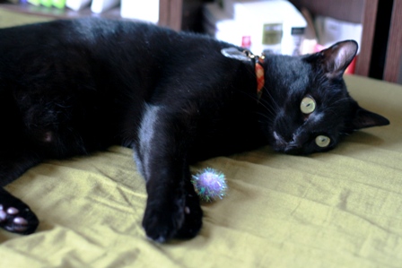 影は自分でキャットタワーの下や羽毛布団の中に逃げ込んでいたので