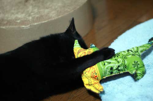 お留守番頑張ったもんね。好きなだけケリケリしてね。