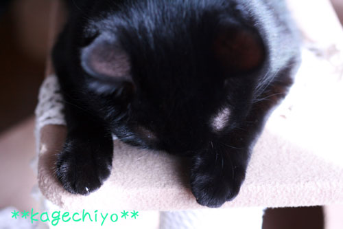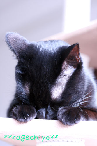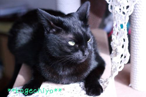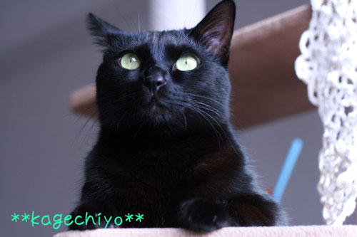 」キャットタワーから外を眺めて、うっとりする影千代さま。