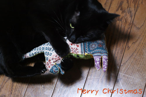 らもらおねえちゃん、いただいたクリスマスカードお借りしちゃったにゃ!