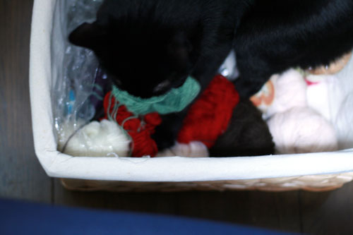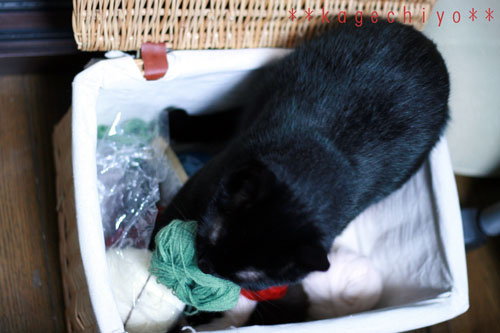 毛糸を入れていたカゴの中にすっぽりと納まって