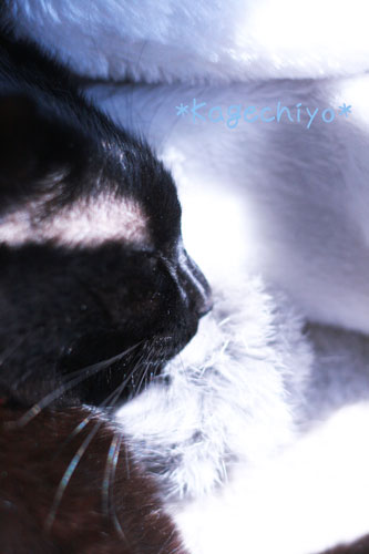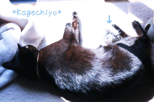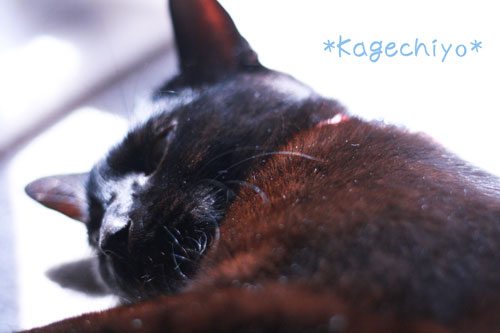 ちょいと前の写真ですが、ぽかぽか日向でぐっすり寝ていた影千代さま