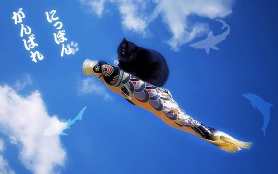 沢山の猫たちが、黒ネコさんの手によって、大空から日本を応援してくれてます♪