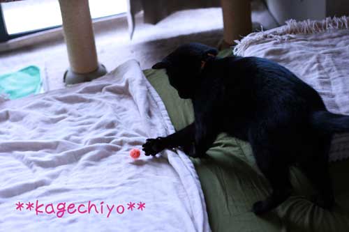 何故か?猫達はあのキラキラボールにそそられるようざますね。